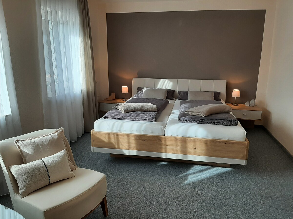 Genießen Sie die Angebote des Mineral- und Moorheilbads und fühlen Sie sich in unserer modernen Wohnung mit gemütlicher Sitzecke wohl.