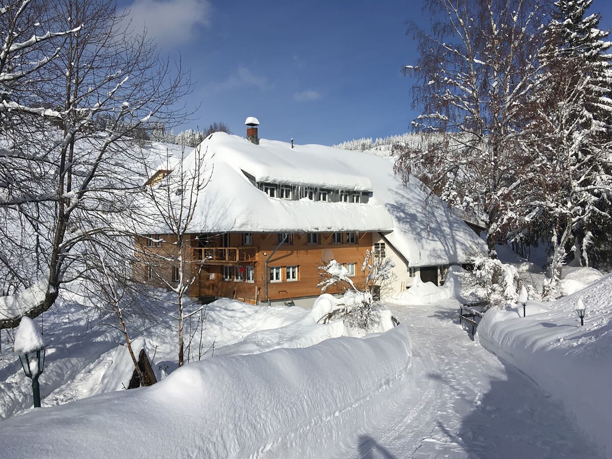 Urlaub. Auszeit. Freiraum. Das Haus am Bach Todtnauberg ist ein besonderer und inspirierender Ort in einzigartiger Umgebung für Urlaube, kleine Alltagsfluchten oder kreative Auszeiten zu jeder Jahreszeit: reichlich Grün und frische Kühle im Sommer, sonnige Tage über dem Nebelmeer im Herbst, oft verschneites Winterwunderland im Winter. Unser über 300 Jahre altes ökologisch saniertes Schwarzwaldhaus liegt am Rand von Todtnauberg in ruhiger Lage in 1.020 m Höhe über dem Meer, freistehend auf einem großen, ebenen Wiesengelände, direkt am Bach.