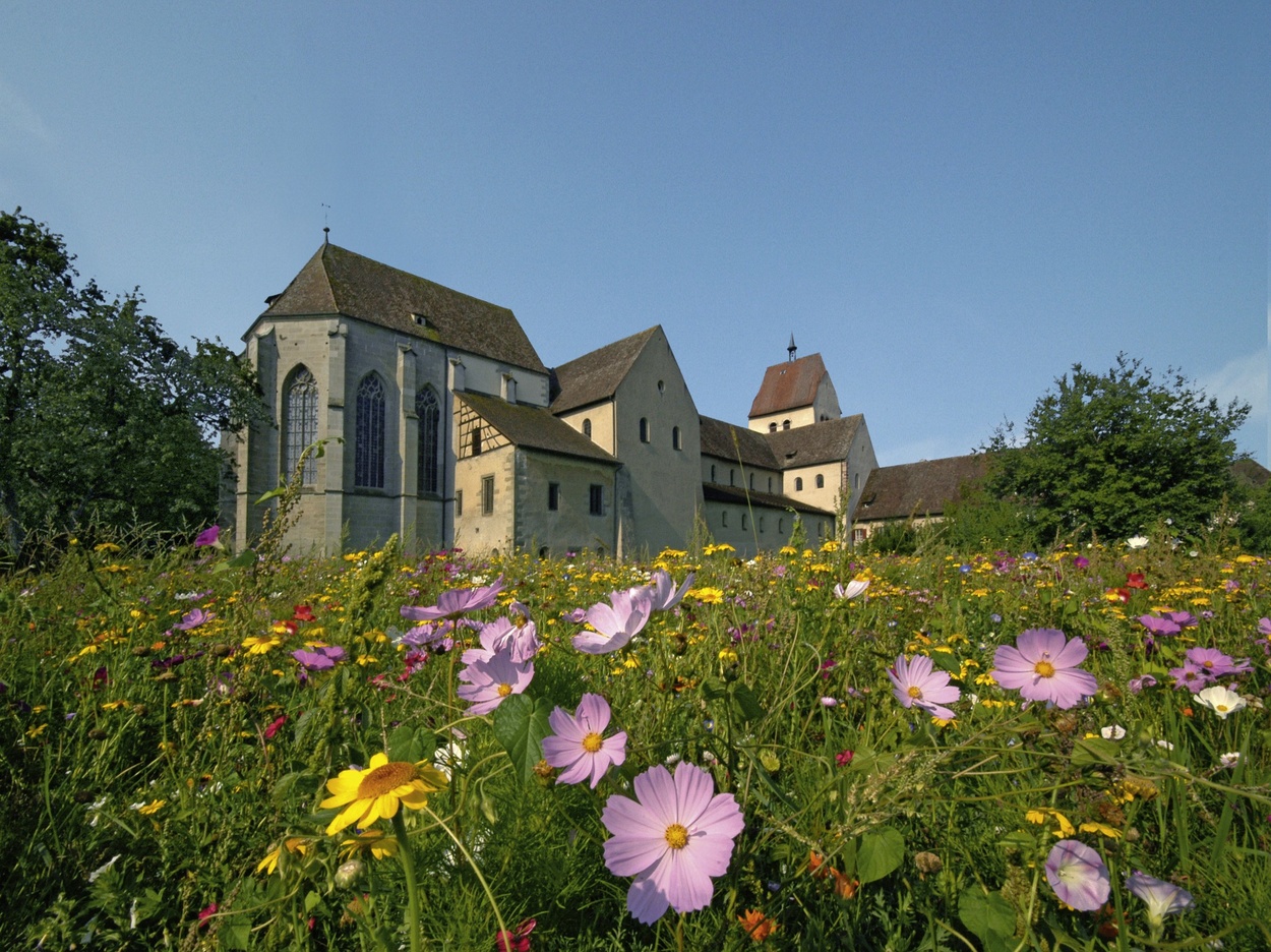 Das Münster St. Maria und Markus ist eine ehemalige Klosterkirche, deren ältestes Bauteil 816 geweiht wurde. Die Kirche St. Peter und Paul in Niederzell besitzt eine eindrucksvolle Orgel und die St.-Georg-Kirche in Oberzell, erbaut 888, enthält beeindruckende Wandmalereien, die vom diesem einstigen Zentrum europäischer Kunstgeschichte des 10. und 11. Jahrhunderts zeugen.