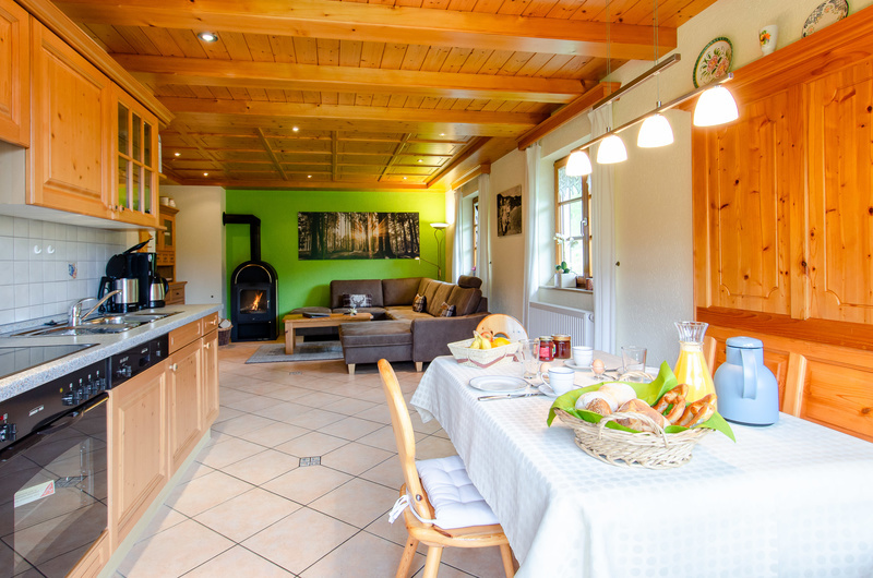 Jede Ferienwohnung ist mit heimischem Fichtenholz in Massivbauweise gefertigt und besteht aus zwei getrennten Schlafräumen, Wohnzimmer, Küche oder abgeteilter Kochnische mit Spülmaschine, Dusche/WC oder Bad/WC sowie Zentralheizung bzw. Kachelofen.Preise/ Nacht: